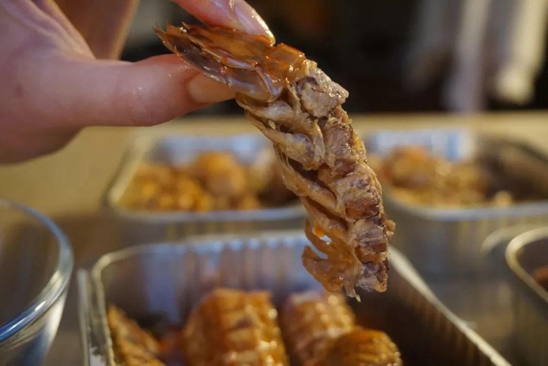 咬一口感覺蠻q彈,肉質緊實有彈性,一節節的蝦肉入口鮮香還有帶有海鮮特有的纖維感,越嚼越香。